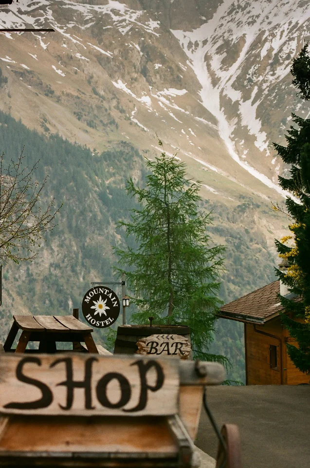 Our 3 hour hike has now taken most of the day as we stop to photograph or sit and take in a view. We are not even half way up the mountain when we serendipitously stumble upon the Mountain Hostel. A legendary place where my dad stayed in the 70’s with his buddies and took my mom back there in the early 80’s. Its also where my brother and his tribe visited in 2008. We were climbing a set of stairs and starting to grow weary when Bryan grabbed my arm and gasped. I looked up and saw the sign of the Mountain Hostel and my eyes leaked with joy. We had not noticed that we would be hiking right through Gimmelwald, but it provided the most unforgettable surprise. We were greeted by our newest friends, Ivy and Joel, with cold beer and great conversation. We became the first walk-in guests of the season and booked a bunk for the night. Together we played guitar and sang old Lion King songs as the sunset behind the Alps.